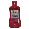 Ingredientes: Agua, vinagre de alcohol, azúcar, jarabe de glucosa y fructosa, concentrado de tomate (48 g de tomates para elaborar 100 g de este producto), almidón modificado de maíz, sal, colorante:E-150d, estabilizante: goma xantana, conservador: sorbato potásico, especias y aroma.